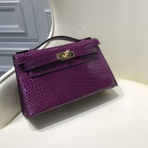 HERMES エルメス 手作りポシェットケリー22 外縫い クロコダイル TD2001P5800-KELLY-01
