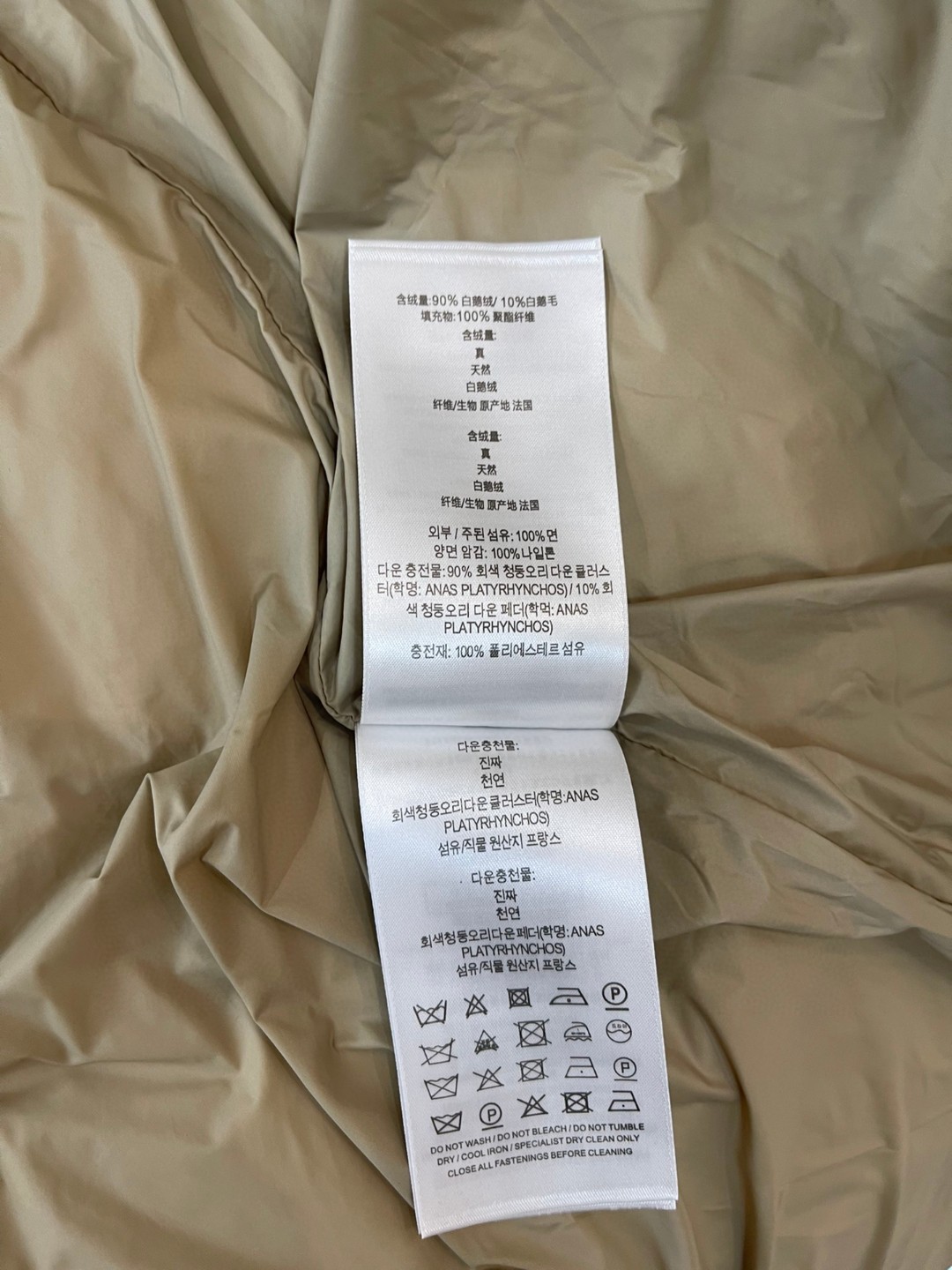 素材:表地/ポリエステル、中綿/ダウン90%
