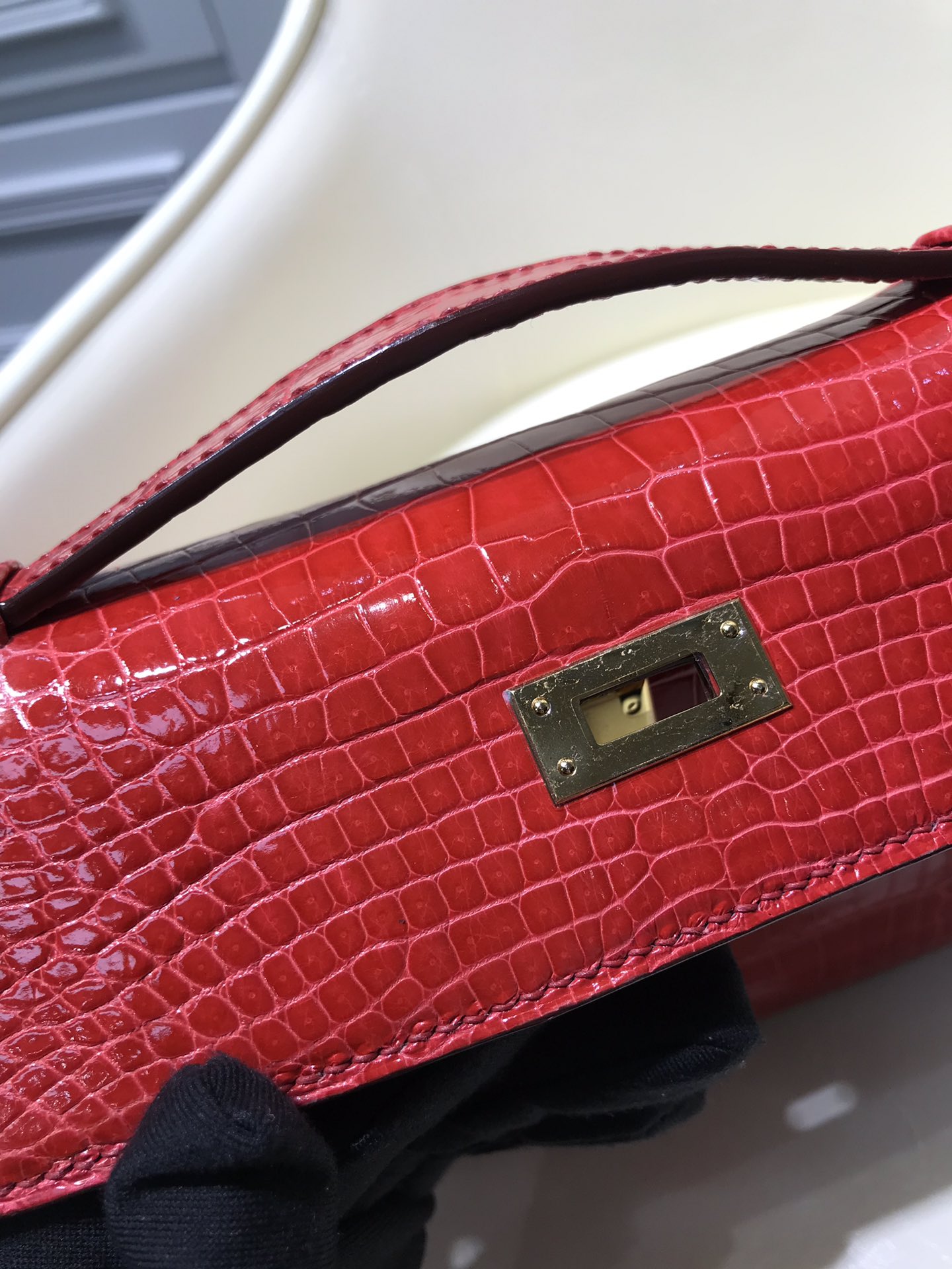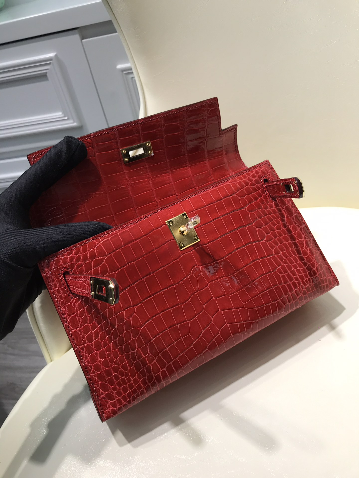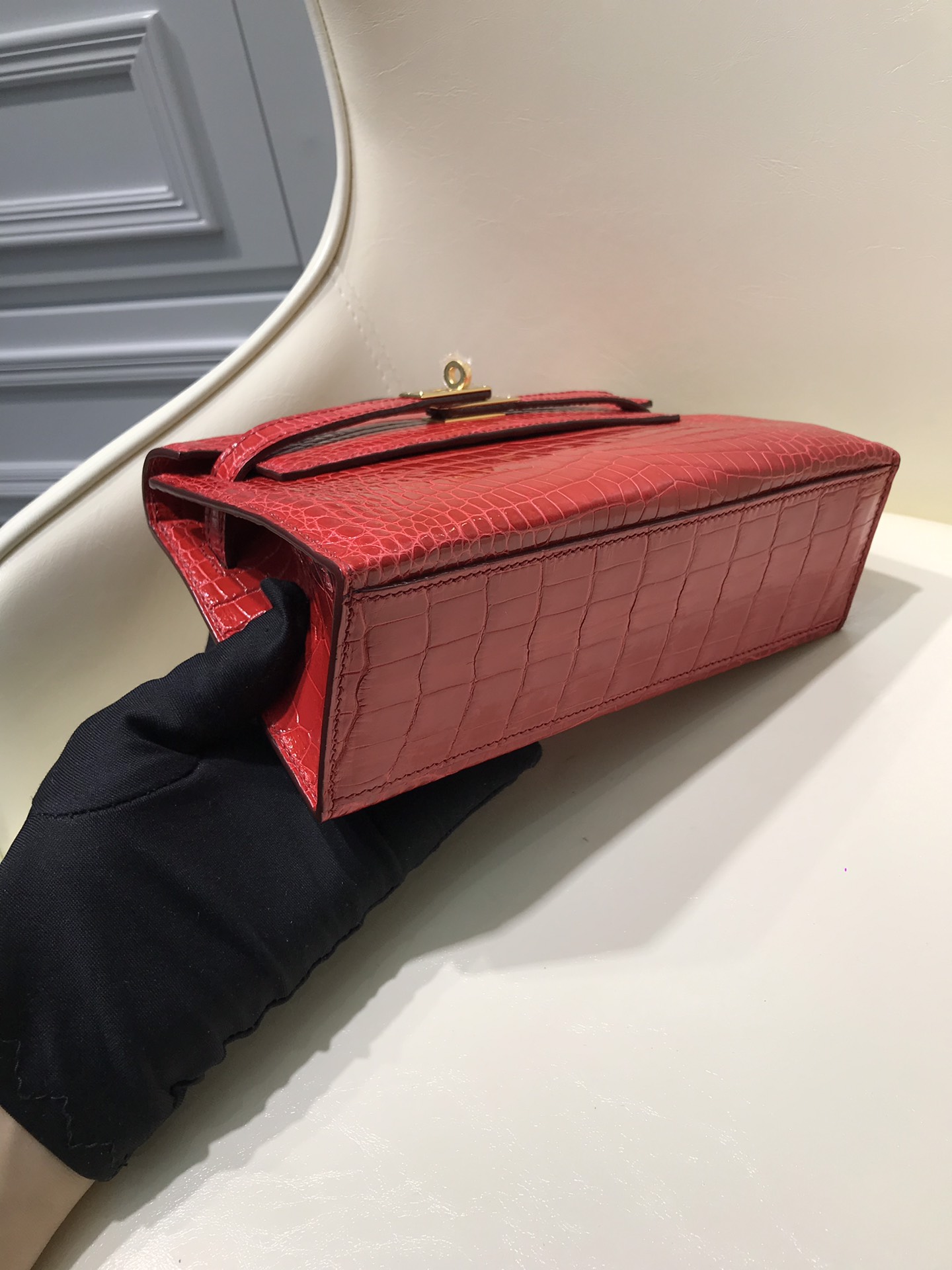 HERMES エルメス 手作りポシェットケリー22 外縫い クロコダイル TD2001P5800-KELLY-02